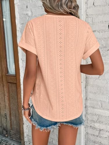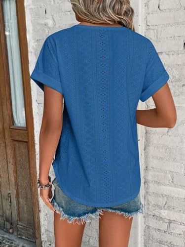 Bliwov Womens Tops Eyelet Embroidery Summer Spring Fashion Clothes Y2K Going Out 2024 Casual Short Sleeve Blouse T Shirts