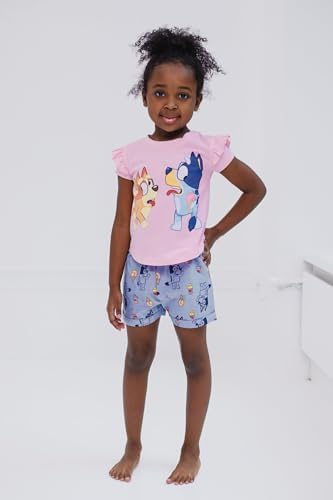 Bluey Girls T-Shirt and Chambray Shorts Outfit Set Toddler to Little Kid Sizes (2T - 7-8)