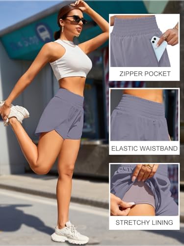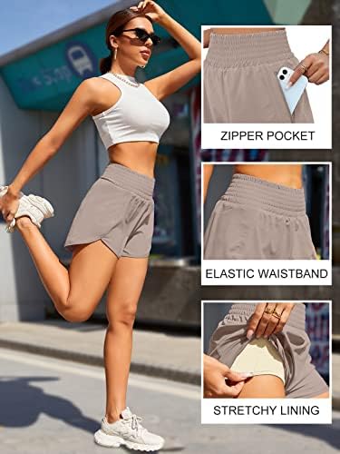 BMJL Women's Athletic Shorts High Waisted Running Shorts Pocket Sporty Short Gym Elastic Workout Shorts