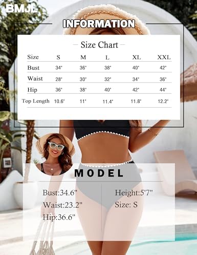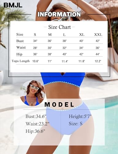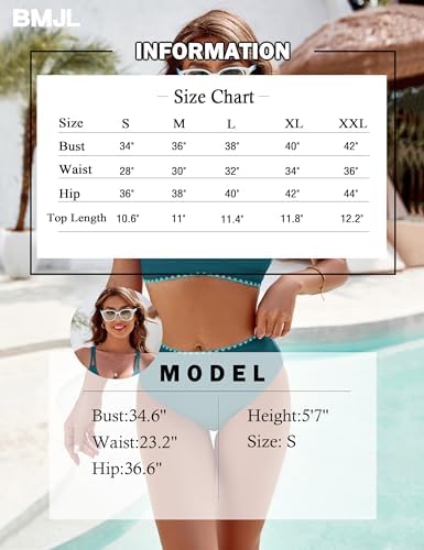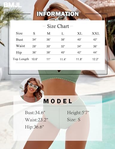 BMJL Women's Bikini Sets V Neck High Waisted Swimsuits Shell Stitched Cheeky Two Piece Bathing Suit