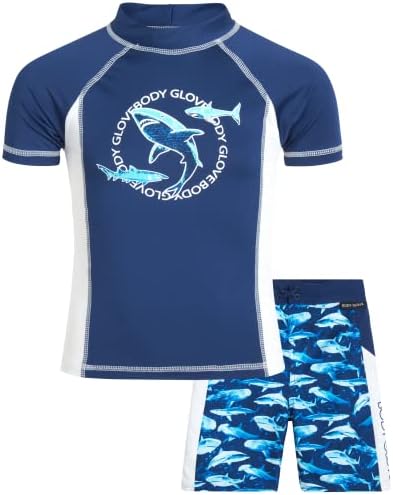 Boys' Rash Guard Set - 2 Piece Rash Guard Sun Protection Swim Trunks and Swim Shirt - Boys' Swimwear Set (4-12)