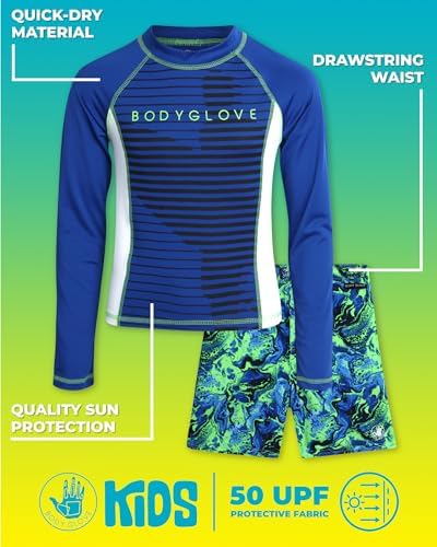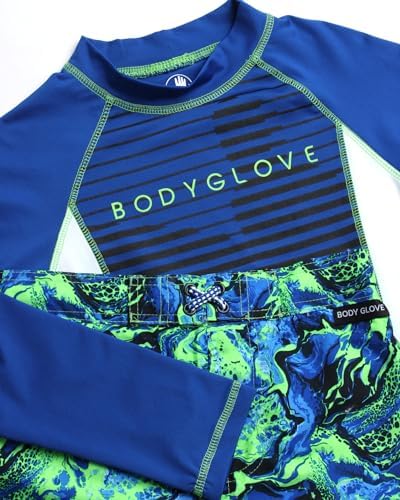 Body Glove Boys' Rash Guard Swim Set - 2 Piece UPF 50+ Swim Shirt and Bathing Suit Trunk for Boys (4-12)