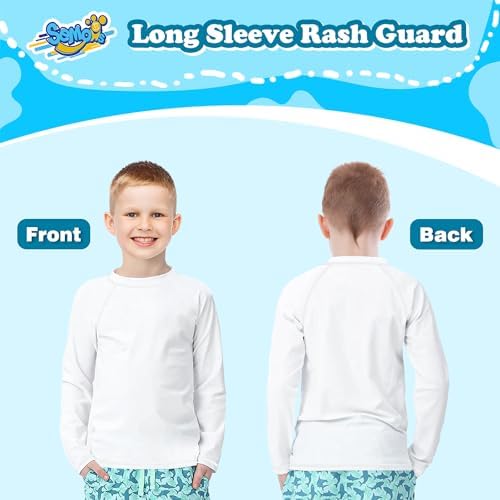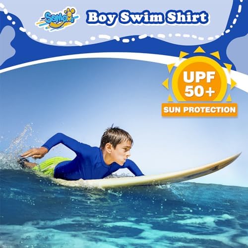 Boys Rash Guard Swim Shirt Long Sleeve UPF+ 50 Sun Shirts for Toddler Kids Rashguard Water Swimming Shirts