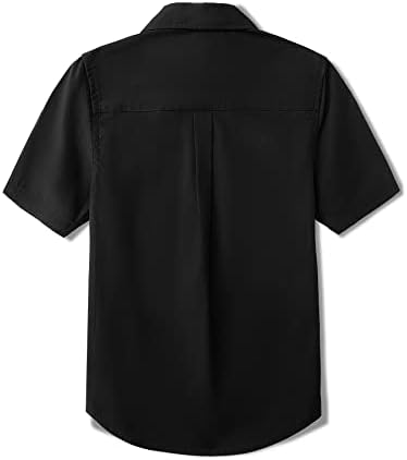 Boys Short Sleeve Dress Shirts Solid Poplin Soft Stretch Fabrics with Two Bow Tie Set