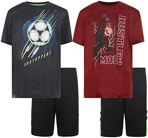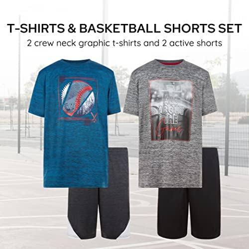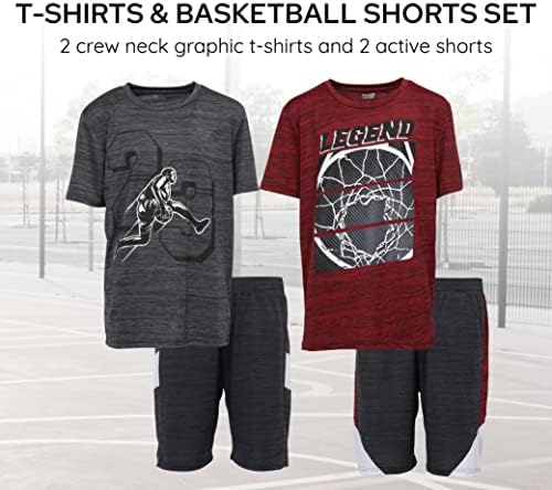 Boys Youth Big Kids Athletic Active Performance Sports 4 Piece Graphic T-Shirt Top and Basketball Short Set