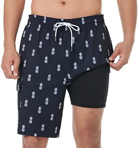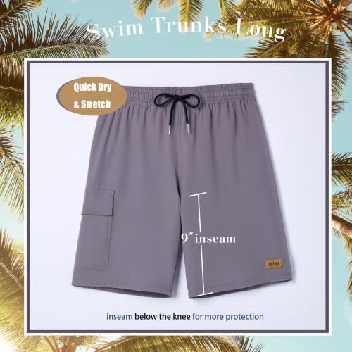 BRISIRA Mens Swim Trunks 9 Inch Inseam Board Shorts with Compression Liner Swimsuit Bathing Suit Quick Dry Cargo Pocket