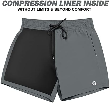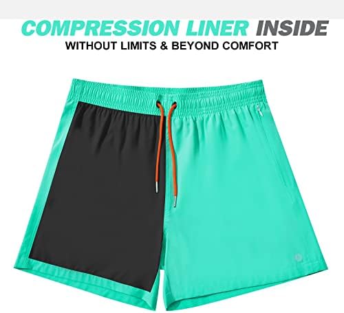BRISIRA mens swim trunks Swim Shorts Quick Dry 5 inch Inseam Beach Shorts with Compression Liner and Zipper Pocket