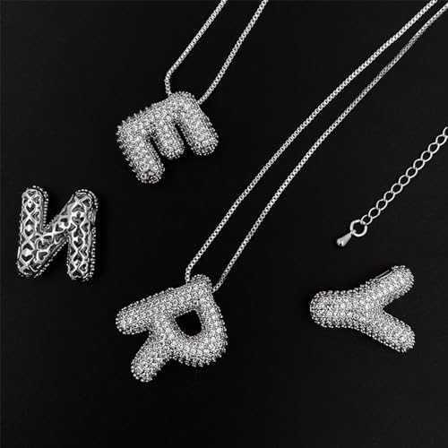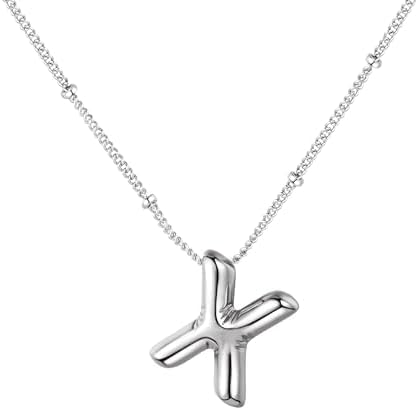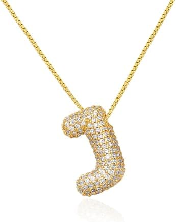 Bubble Letter Necklace Balloon Initial Necklaces for Women Girls Dainty Alphabet Pendant 14K Gold Plated Puffy Name Personalized Jewelry Gift