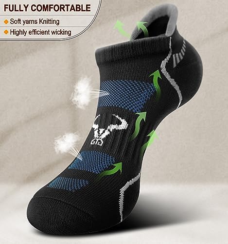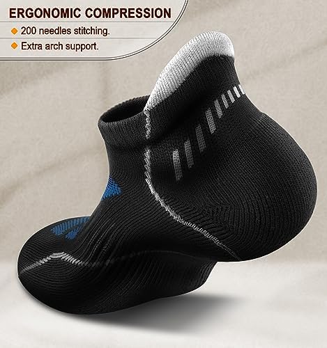 BULLIANT Men Running Socks 6Pairs-Ankle Athletic Socks Wicking Cushioned for Men Walking-Arch Compression Support