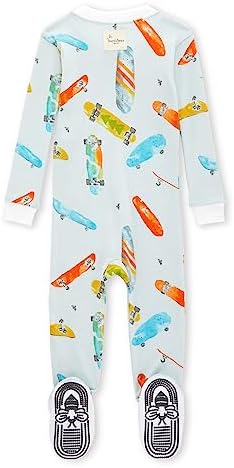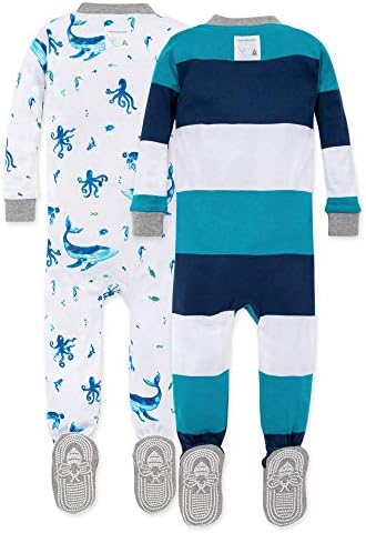 Burt's Bees Baby Baby Boys' Pajamas, Zip-front Non-slip Unisex Footed Sleeper Pjs, Organic Cotton
