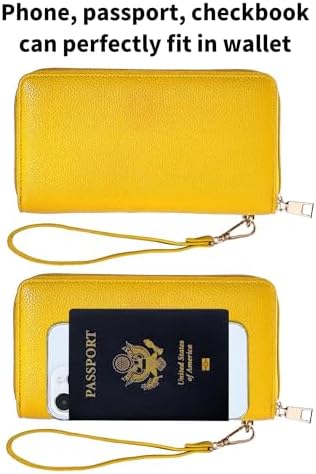 Bveyzi Women RFID Blocking Wallet Leather Zip Around Phone Clutch Large Capacity Ladies Travel Purse Wristlet