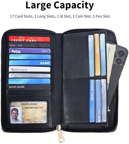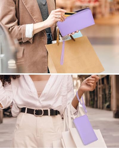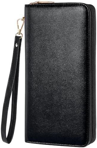 Travelambo Women's Wallet RFID Blocking Credit Card Holder Large Capacity Wristlet Leather Wallets Purse