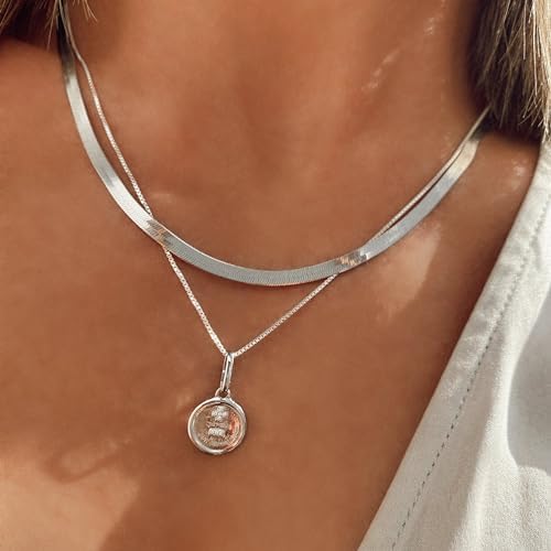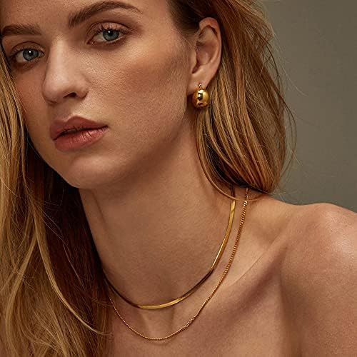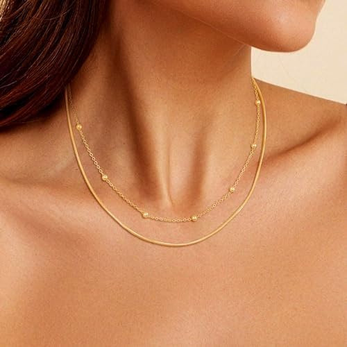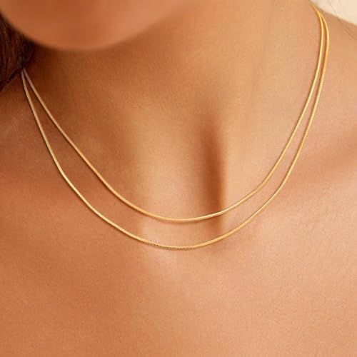 CHESKY 14K Gold/Silver Plated Snake Chain Necklace Herringbone Necklace Gold Choker Necklaces for Women Gifts Jewelry 1.5/3/5MM(W) 14"/16"(L)