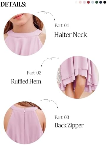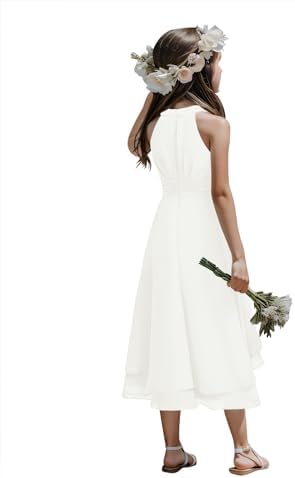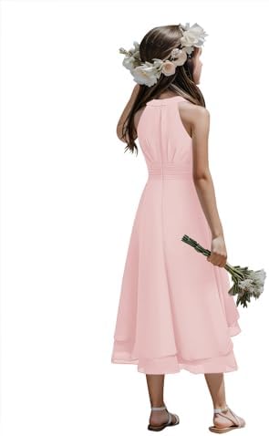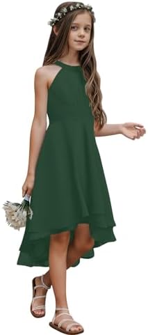 Chiffon Flowy Dresses Flower Girls Asymmetrical with Ruffles Sleveless Swing Party Gowns A-Line Dress…