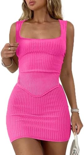 CHYRII Womens Sexy Summer Two Piece Outfits Square Neck Going Out Crop Tops Bodycon Skirt Sets Mini Dress