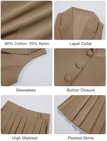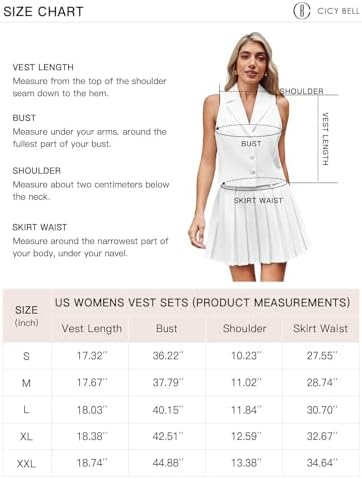 Cicy Bell Womens Summer 2 Piece Outfits V Neck Blazer Vest Matching Sets and Mini Pleated Skirts