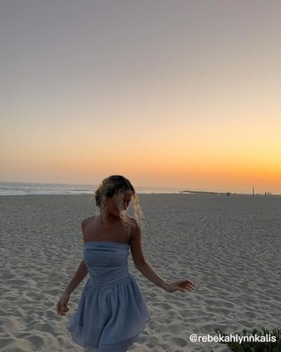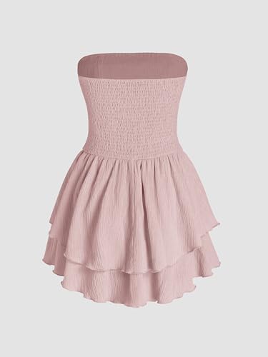 CIDER Women's Summer Cocktail Dress - Tube Ruched Ruffle Mini Dress