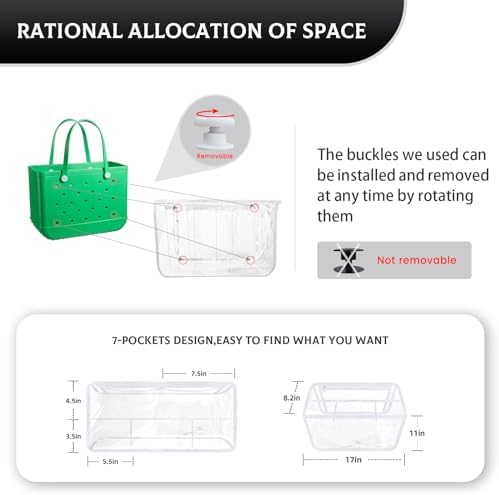Clear Beach Bag Organizer Original Accessories for Bogg Bag X Large Storage Bag Suitable for BOGG BAG Organizing Your Bag and Divide Space,Transparent & Black