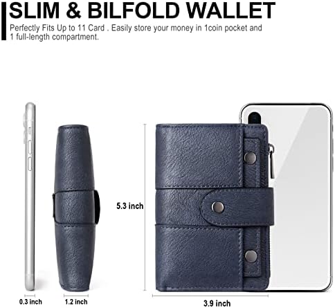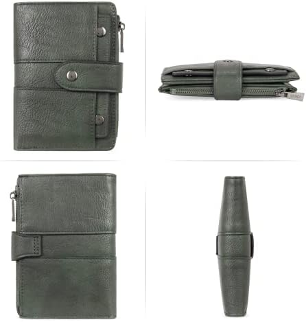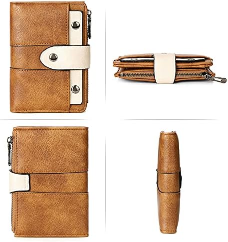 GOIACII Small Women Wallet Genuine Leather RFID Blocking Bifold Zipper Pocket Card Holder with ID Window