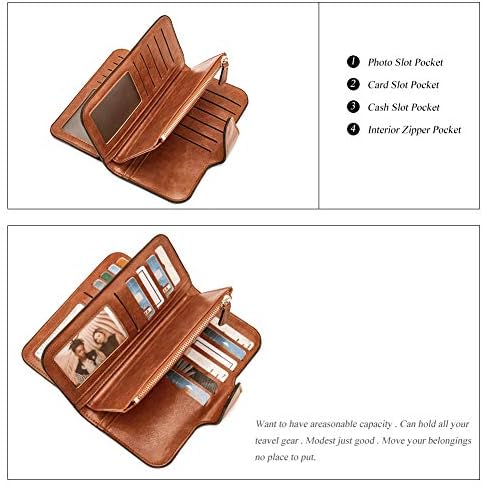 Travelambo Women's Wallet RFID Blocking Credit Card Holder Large Capacity Wristlet Leather Wallets Purse
