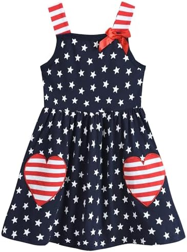 CM-Kid Little Girls Dress Summer Toddler Girl Clothes 4th of July Dress Kids 2-8 Years