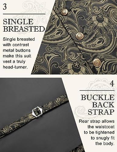 COOFANDY Mens Suit Vest Paisley Floral Victorian Vests Gothic Steampunk Formal Waistcoat Tuxedo Vests with Notched Lapels