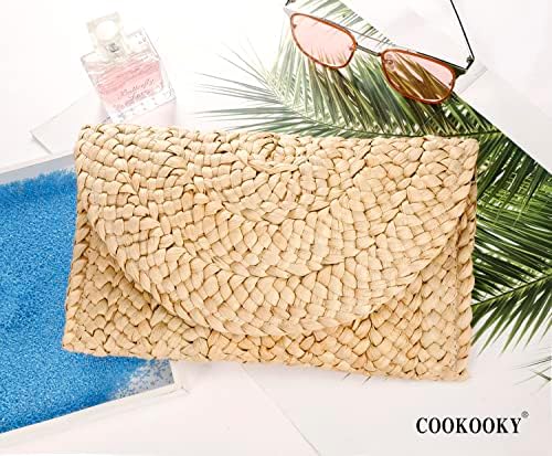 COOKOOKY Straw Clutch Handbag Summer Beach Straw Purse for Women woven Envelope Bag