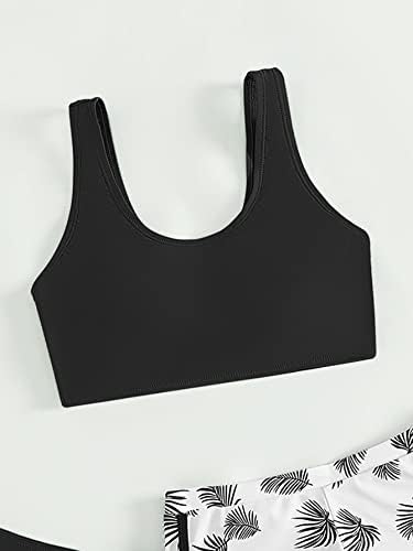 COZYEASE Girls' 3 Piece Swimsuit Tropical Print Bikini Bathing Suit with Shorts