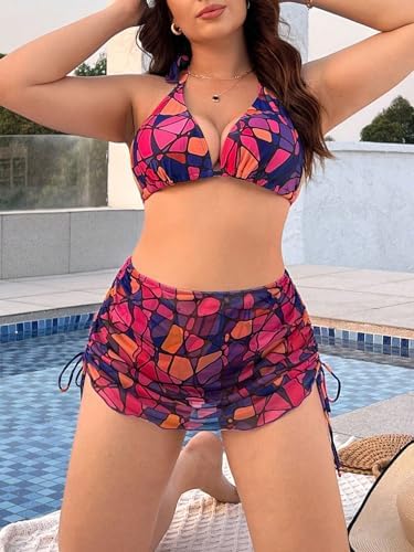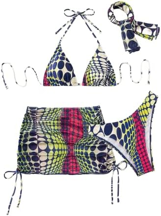 COZYEASE Women's 4 Piece Swimsuits Sexy Bikini Sets Triangle Bathing Suit with Mesh Cover Up Beach Skirt & Bandana