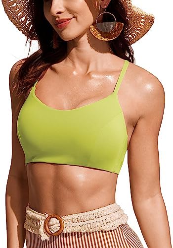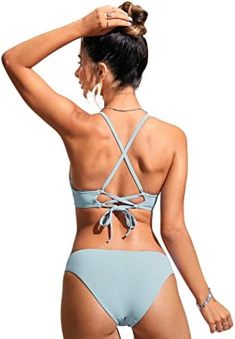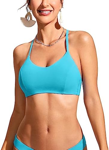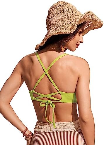 CRZ YOGA Women's Bikini Top Lace Up V Neck Swimsuits Crisscross Bathing Suit Swim Sports Bra Padded