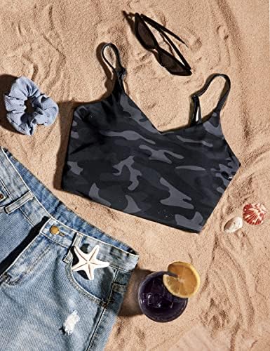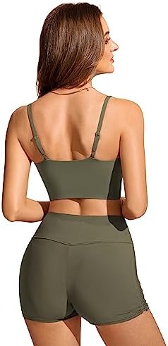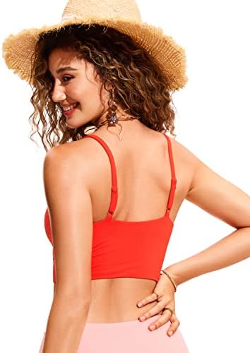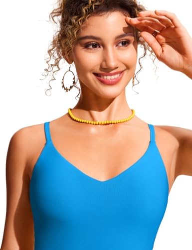 CRZ YOGA Women's Bikini Top V Neck Adjustable Spaghetti Straps Swimsuit Padded Athletic Bathing Suit Tops