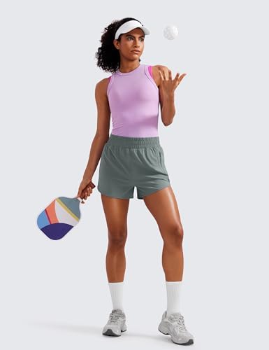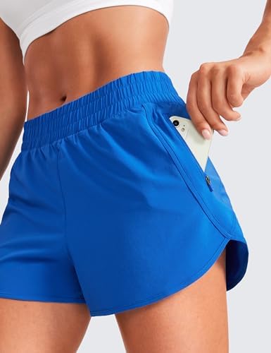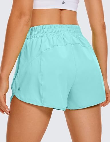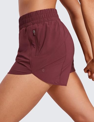 CRZ YOGA Women's High Waisted Running Shorts Mesh Liner - 3'' Dolphin Quick Dry Athletic Gym Track Workout Shorts Zip Pocket