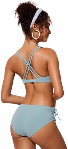 CRZ YOGA Womens V Neck Bikini Tops Twist Front Bathing Suit Tops Criss Cross Back Swim Top Padded