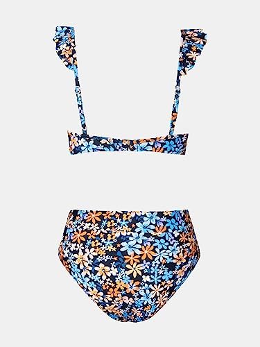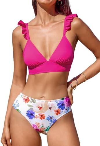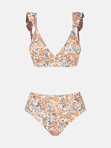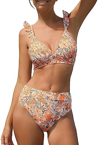 CUPSHE Women Bikini Sets 2 Piece Swimsuit High Waisted Bottom Floral Print Ruffle V Neck Bathing Suits