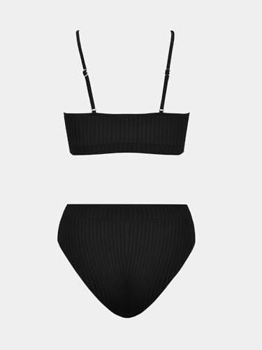 CUPSHE Women's Bikini Set Two Piece Swimsuits High Waisted Scoop Neck Spaghetti Adjustable Straps Textured