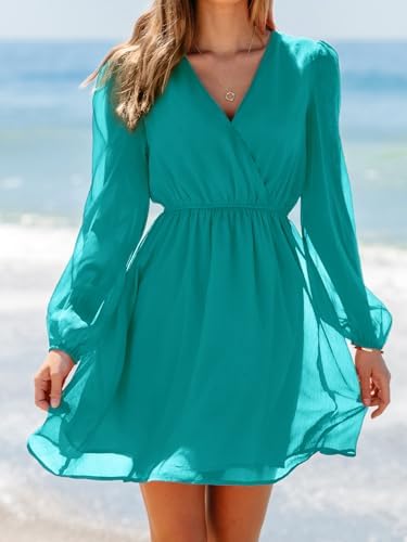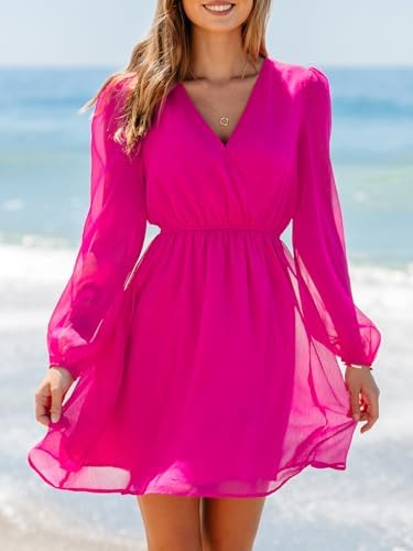 CUPSHE Women's Floral Print Chiffon A-Line Mini Dress Long Peasant Sleeves
