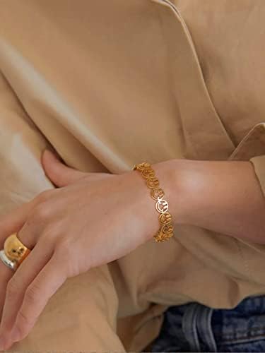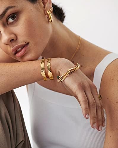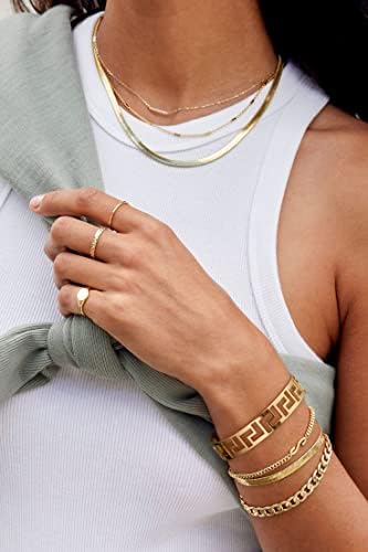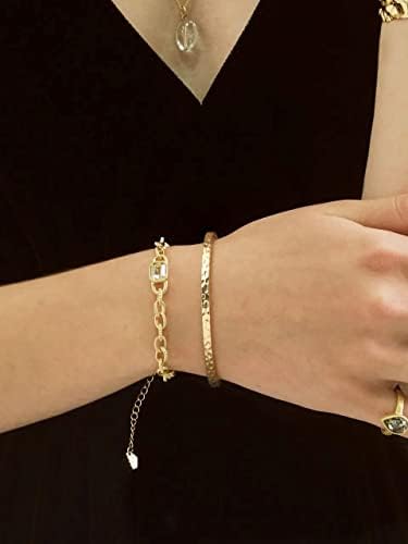 Gold Bracelet for Women Stack 14K Real Gold Plated Bangle Cuff Bracelet Set Gold Beaded Tennis Paperclip Cuban Link Chain Bracelets for Women Trendy Non Tarinish