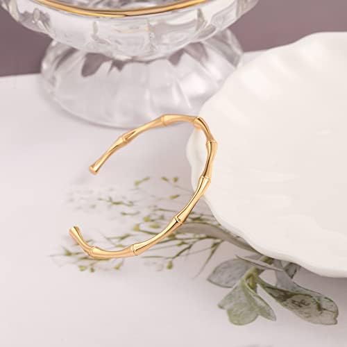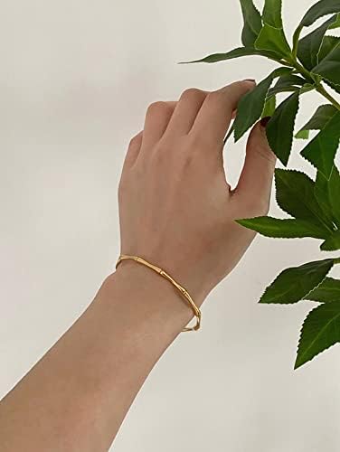Dainty Gold Bar Bracelet for Women Simple Delicate Thin Cuff Bangle Hook Bracelet 18K Gold Plated Handmade Minimalist Jewelry