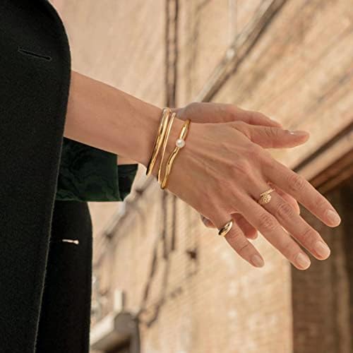 iF YOU 8 Pcs Gold Bracelets for Women - 14K Gold Plated Stackable Bracelets Set, Layered Silver Bracelets Stack Jewelry