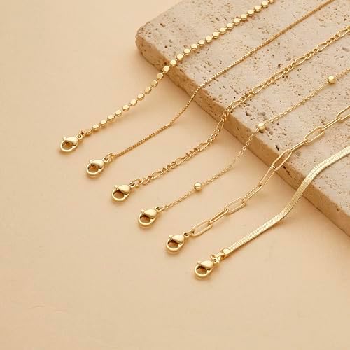 DEARMAY Waterproof Gold Bracelets Set for Women Trendy, Dainty 14K Real Gold Plated Jewelry Fashion Stackable Tennis Beaded Figaro Herringbone Paperclip Link Bracelet Pack Stack Gifts for Women