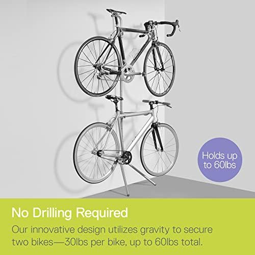 Delta Cycle Two Bike Gravity Pole Stand Garage, 2 Bike Storage Rack, No Drilling Required, Fully Adjustable Vertical Bike Rack for Any Style Bicycle, Leaning Wall Bike Rack Holds Up to 60 lbs