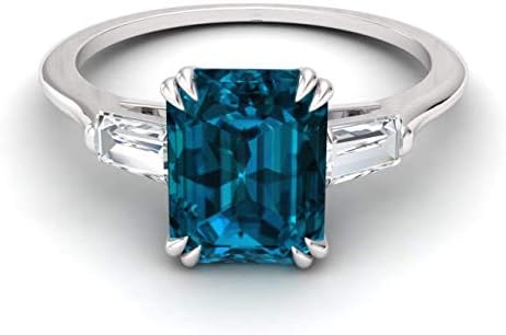 Diamondere Natural and Certified Gemstone and Diamond Baguette Engagement Ring in 14K White Gold | 0.67 Carat Three Stone Ring for Women, US Size 4 to 9