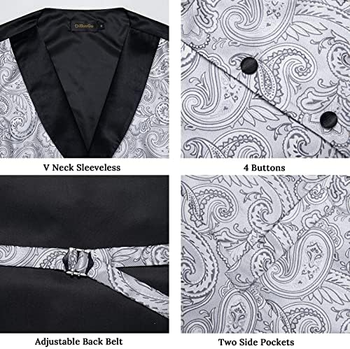DiBanGu Mens Paisley Suit Vest Silk Jacquard Waistcoat and Necktie Set Formal Shawl Collar Dress Vest 7PCS for Wedding Party