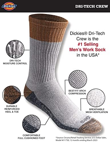 Dickies Men's Dri-Tech Moisture Control Crew Socks Multipack, Available in M-XXL