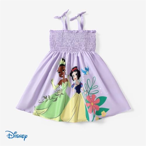 Disney Princess Dress Toddler Girl Dress Bow Strap Toddler Dress Smocking Sundress 2-6 Years