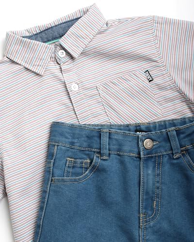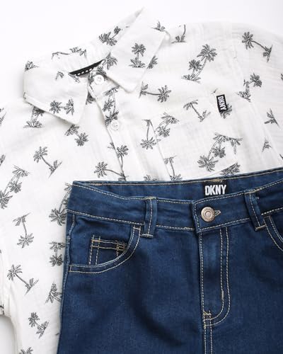 DKNY Boys' Shorts Set - 2 Piece Short Sleeve Button Down Shirt and Denim Jean Shorts - Summer Outfit for Toddler Boys (2T-7)