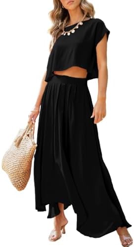 Dokotoo Dresses for Women 2 Piece Summer Outfits Crewneck Tops and Maxi Skirt Dress Sets