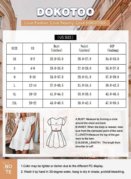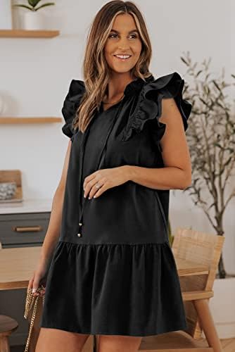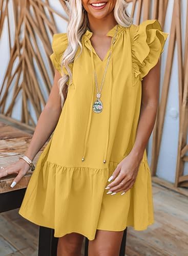 Dokotoo Summer Dresses for Women 2024 Ruffle Sleeve Drawstring Babydoll Dress