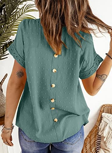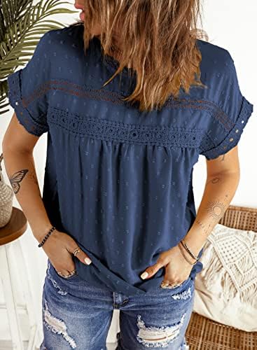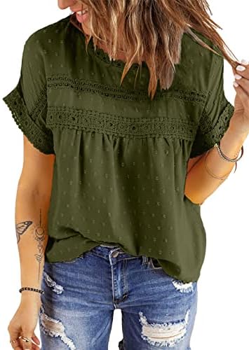 Dokotoo Womens Summer Tops Crewneck Lace Crochet Short Sleeve Shirts Casual Chiffon Blouses