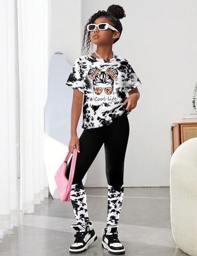 DONWEN Girls Clothes Tie Dye Outfits,2 Piece Girl Sweatsuit Graphic Short Sleeve Tops Long Pants Summer Clothes for Girls